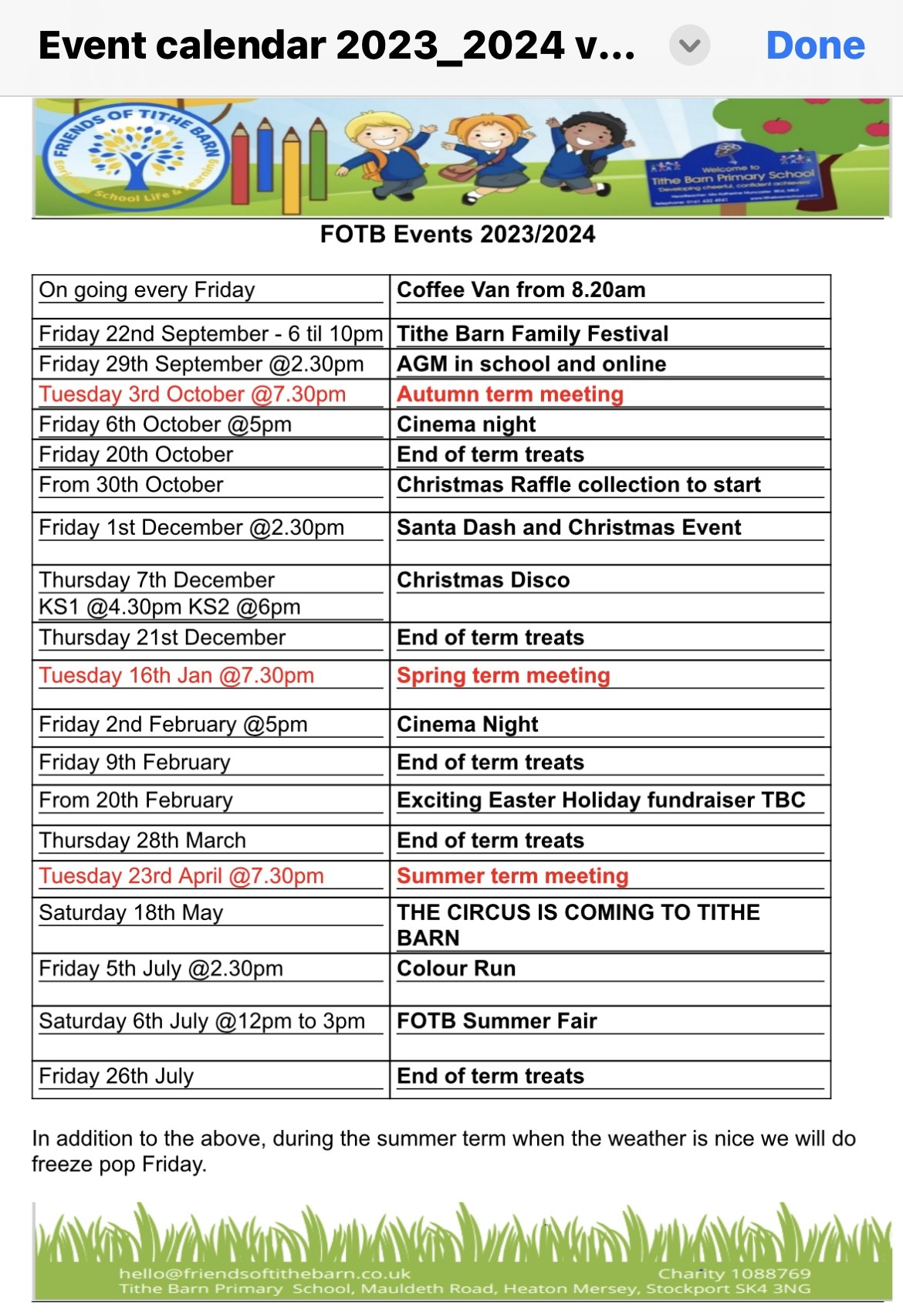 Book Fest Book Swap: 27th February, 2026: For the last few years, FoTB have organised a fantastic little event where Tithe Barn families can donate pre-loved books for a book swap. This year, it will be on Friday 27th February. Please bring in donations of good-quality books from Tuesday 24th Feb, and on Friday, for a £2 donation, children will be able to choose up to 4 books from a Book Swap in the hall. We know school have lots of fantastic author visits, workshops and activities planned for this week - and we hope this will top it off! New for this year - from 3 - 3:45pm, we’ll be running a “sibling book swap” - so come along after pick up with any little siblings, and help yourselves to any leftover books!